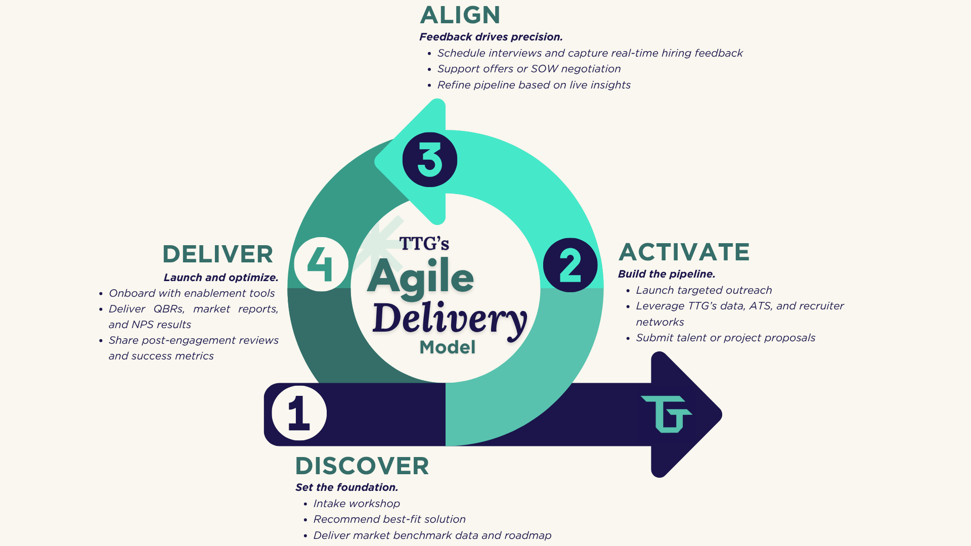 In the technology sector, we know how efficient and effective the Agile methodology is for delivering results. Technical Talent Group leverages our 7-step Agile Recruiting Model to streamline your hiring process. This model is used by many companies to tackle projects or to keep people on contract for longer periods of time. We don't just post a pay rate send you the resumes, Technical Talent Group finds you the ideal candidates and hires them on our payroll. You manage the contract employee on a day-to-day basis, but Technical Talent Group takes care of all the necessary onboarding paperwork and payroll services for as long as your company needs.